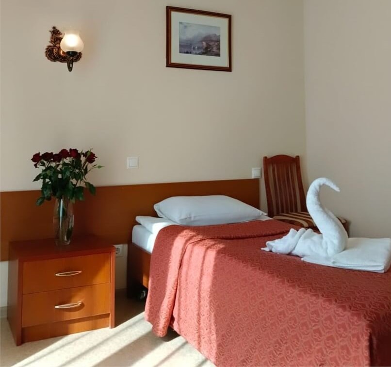 В номерах размещение с животными не допускается. За территорией санатория есть гостиница для животных, где сможете разместить своего питомца на период вашего отдыха в санатории.