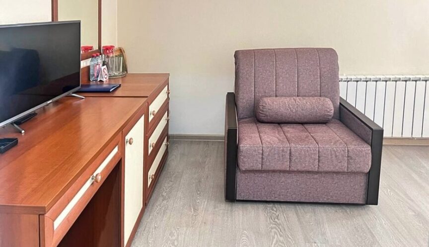 Уборка номера ежедневно, смена полотенец по требованию гостя. Смена постельного белья — 1 раз в 3-5 дней или по требованию гостя. Питьевая бутилированная вода – один раз в день.